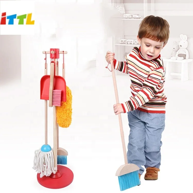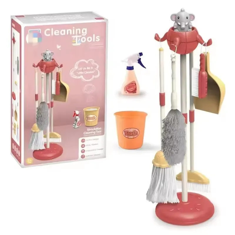 Hot Sale Kids Cleaning Set Toy Role Play House Cleaning Tools with Plastic Brushes and Mop Fun Educational Toy